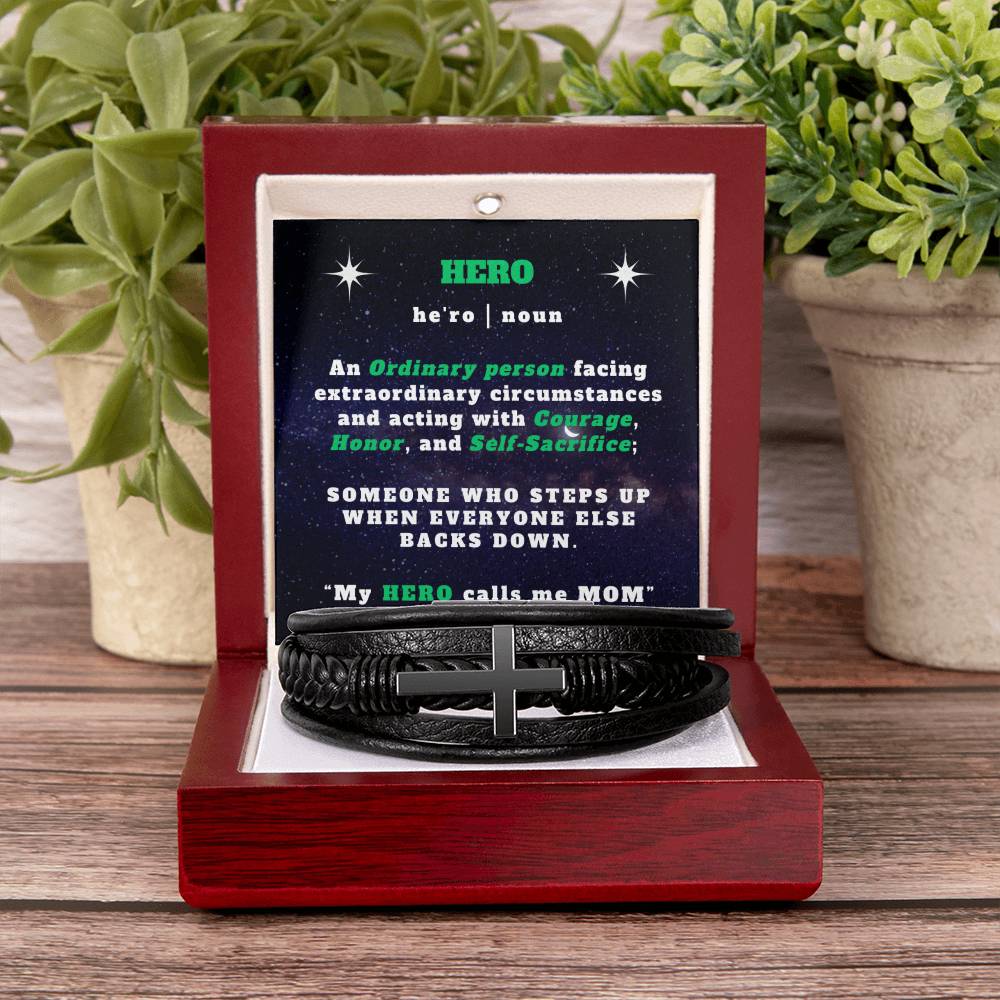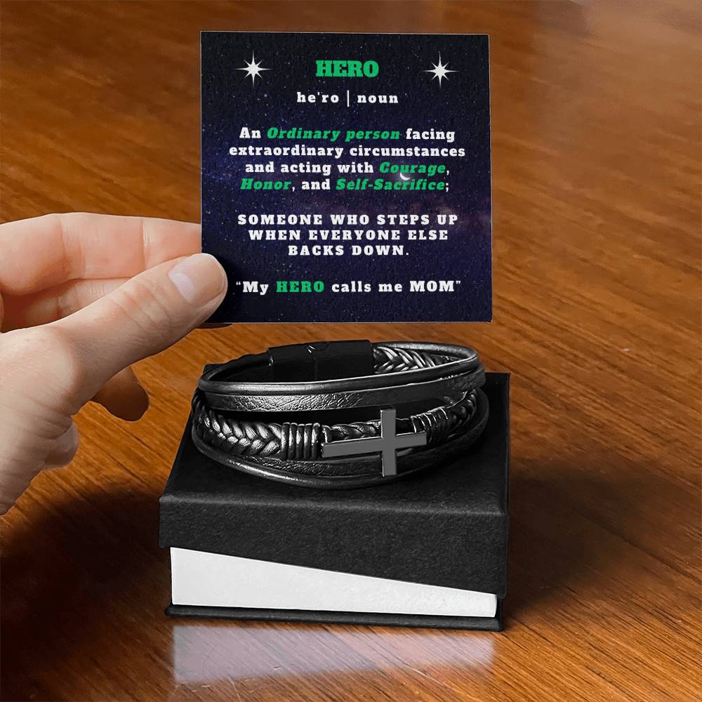 To My HERO - Leather Cross Bracelet - My Hero Calls Me Mom