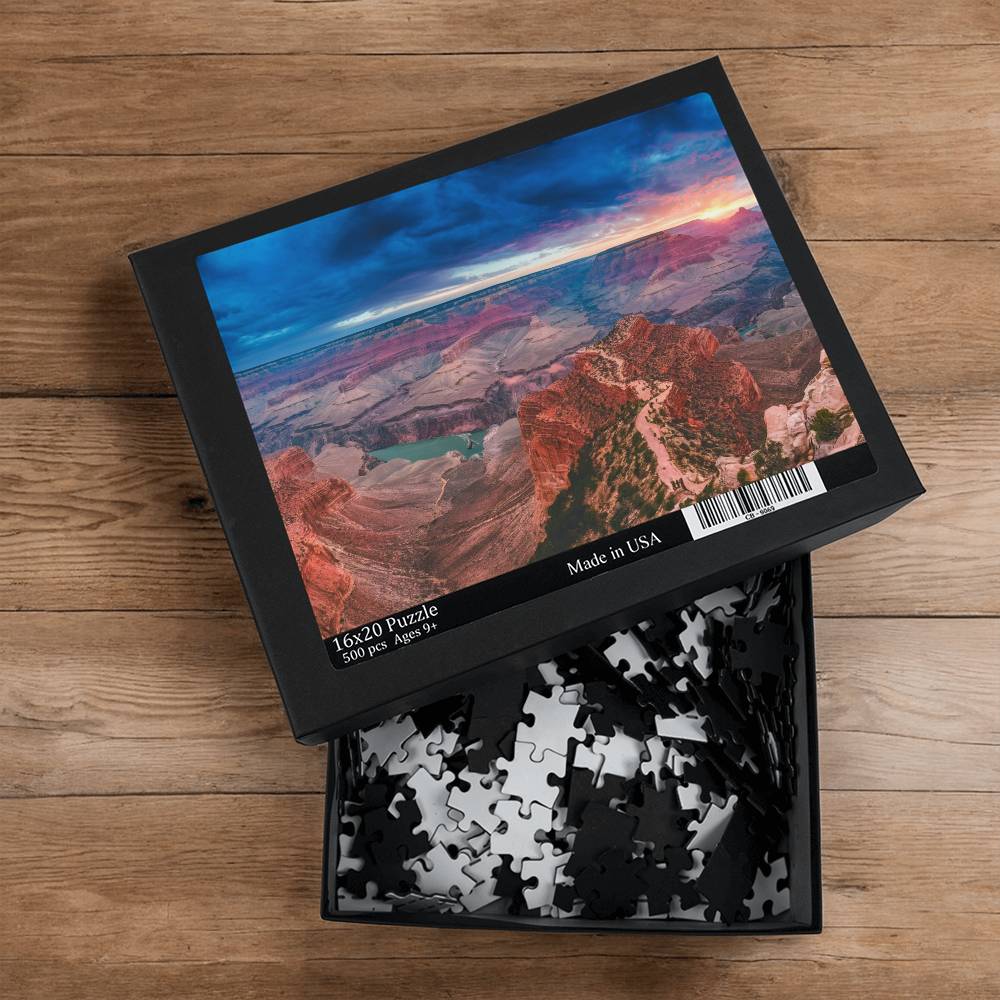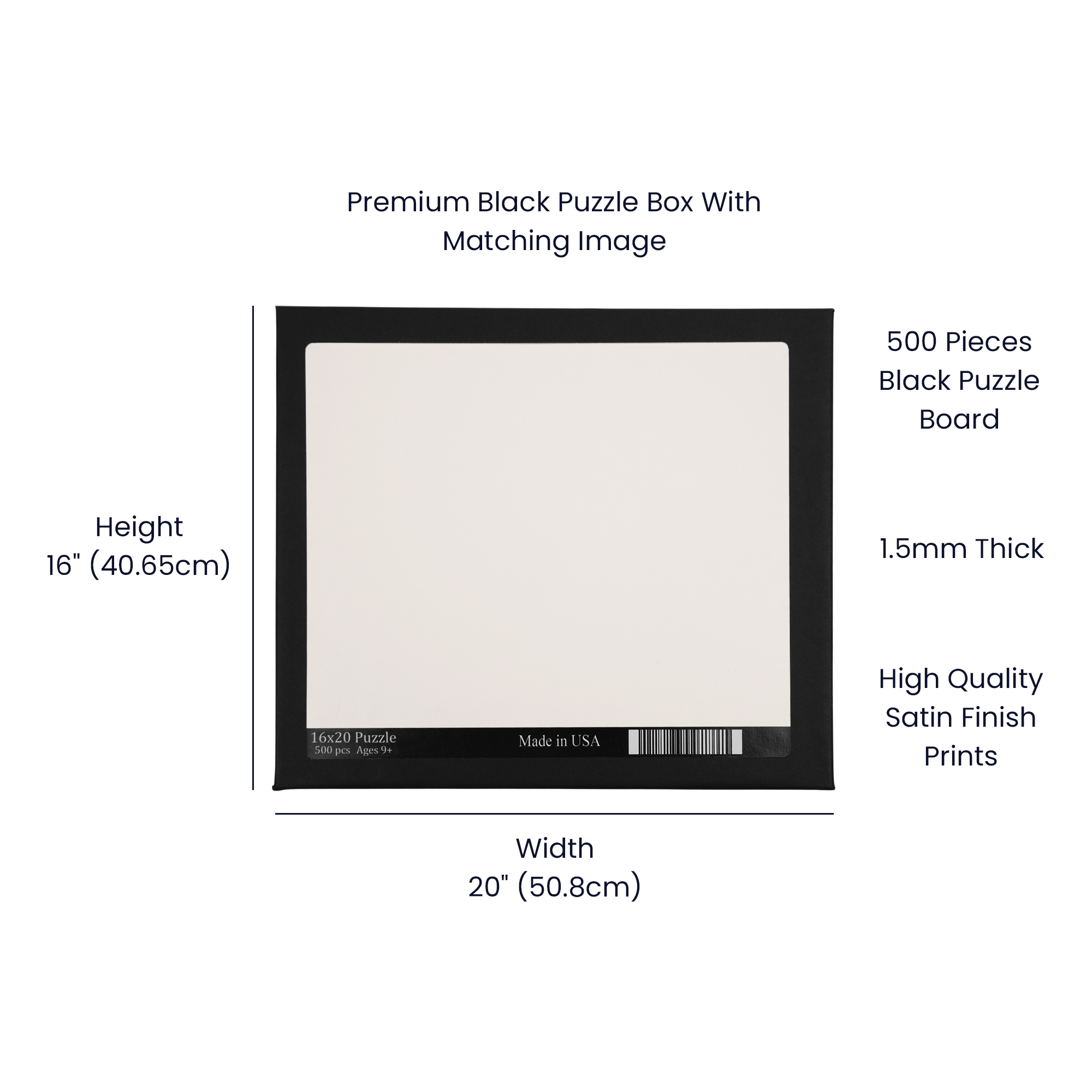 Searching for a playful way to celebrate moments? Discover Our 16" x 20" Puzzle! Ideal for creating memorable experiences, your puzzle comes in a sleek black box, showcasing the finished picture on the front. Inside, you'll find 500 high-quality, satin-finished pieces. Turn downtime into joyful moments with this enjoyable puzzle, perfect for adding fun to any gathering.